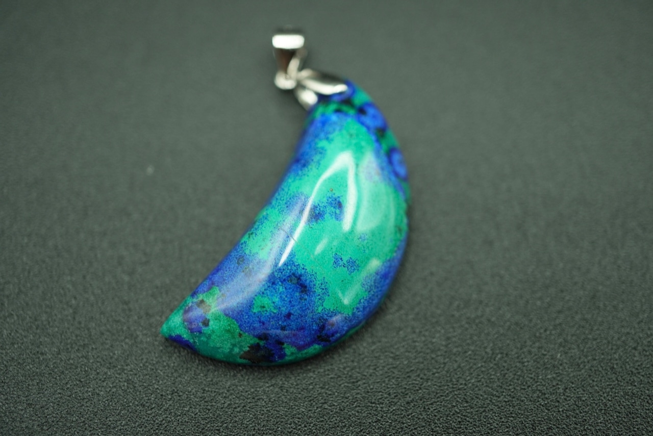Silver925 高発色 アズロマラカイト 31-34x17mm 三日月 ペンダントトップ