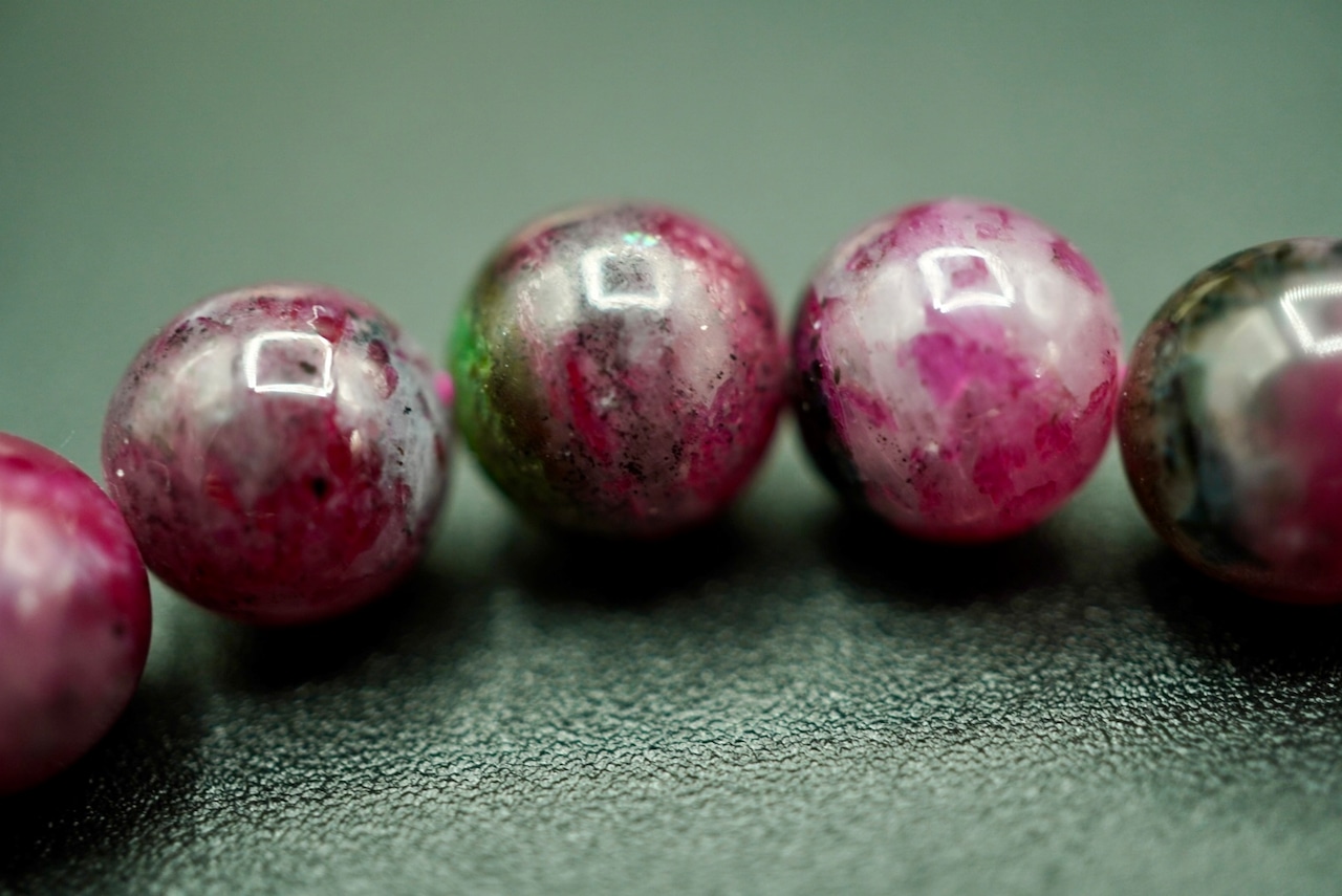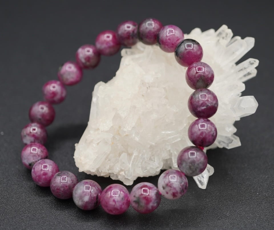 【1点物】鮮やか ルビーたっぷり ルビーインゾイサイトシリカ 9mm ブレスレット