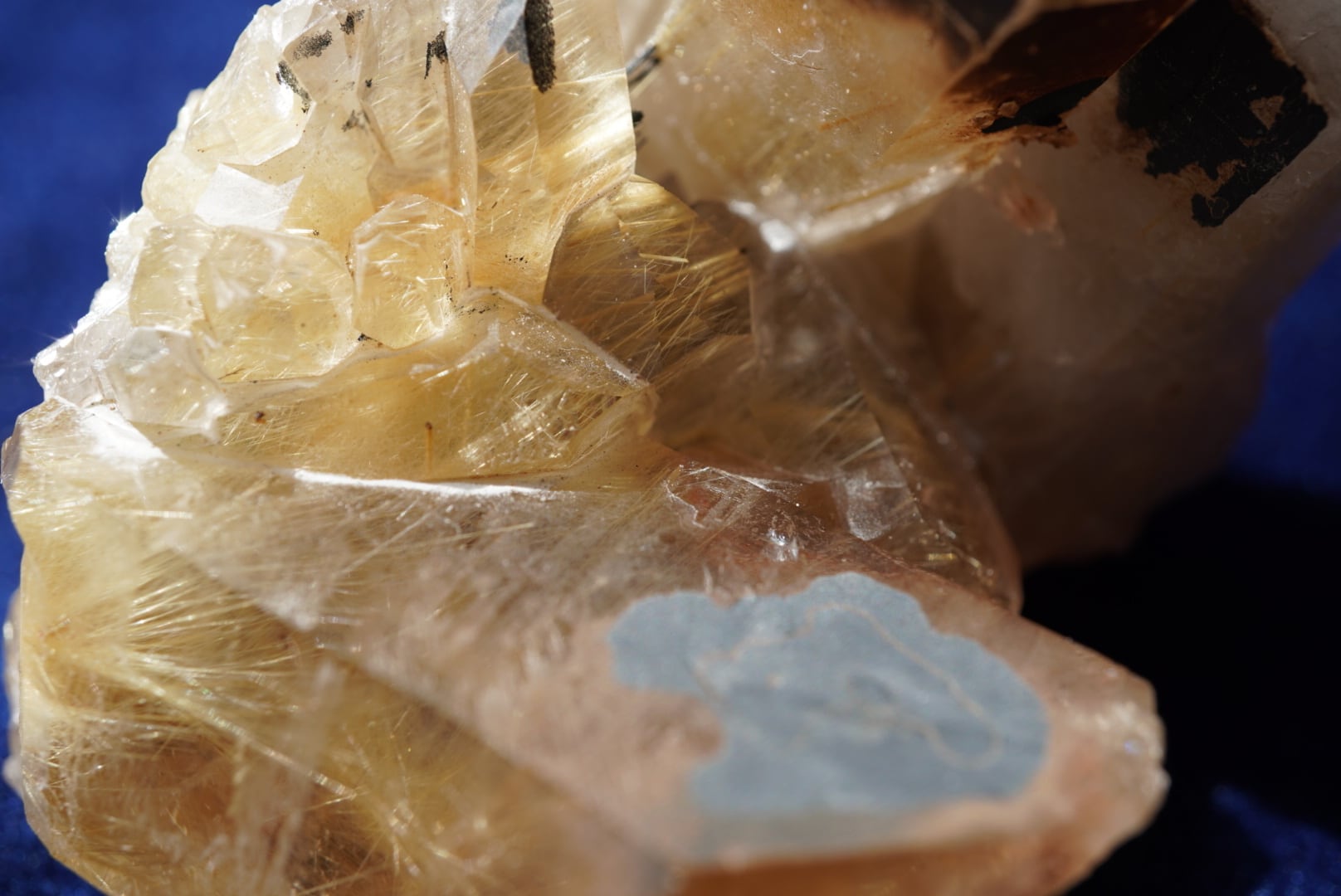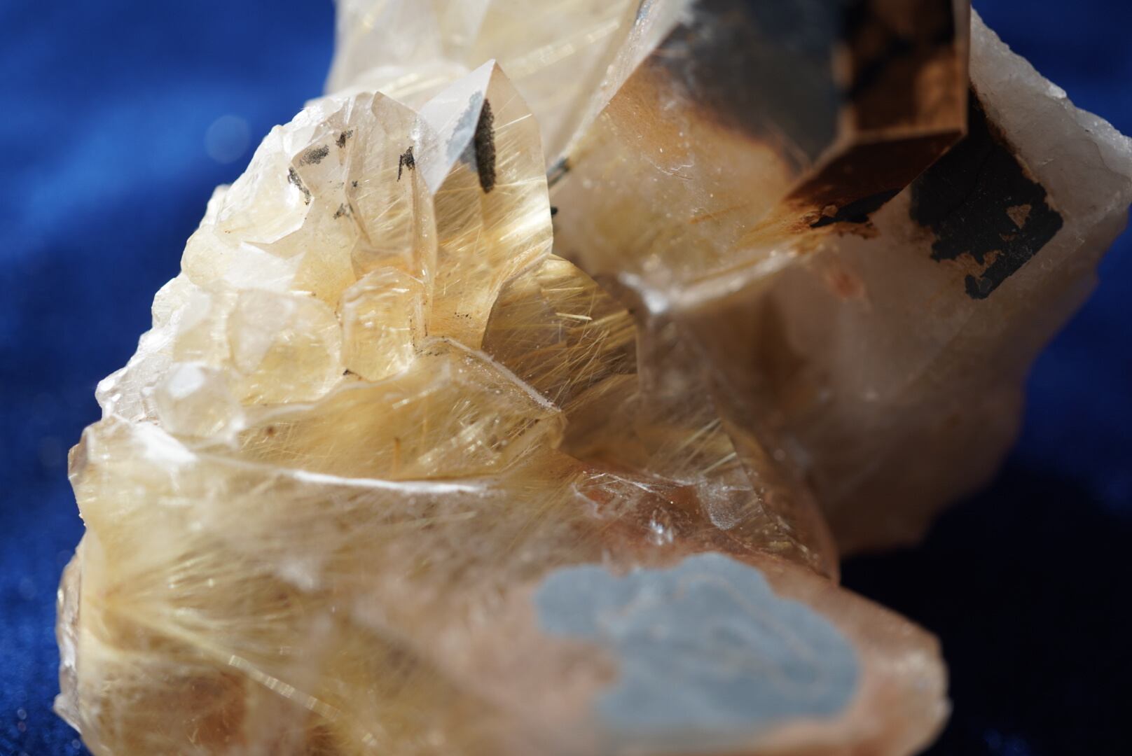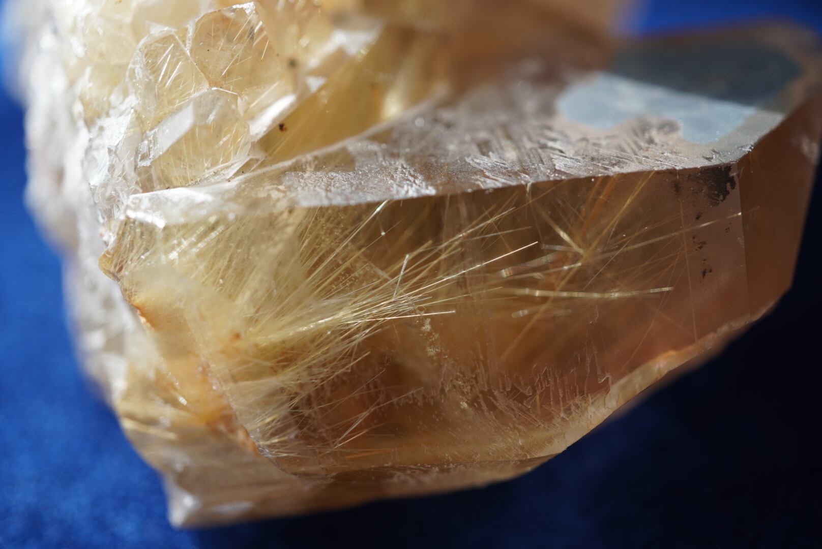 黄金色のルチル(金紅石)が水晶の中に閉じ込められた
